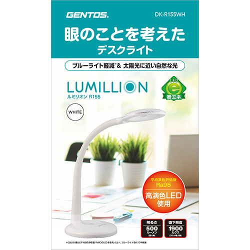 - 眼のことを考えたデスクライト:高演色(Ra95)LEDによりブルーライトを軽減※し、太陽光に近い自然な光を実現。眼が疲れにくい。※当社の旧製品(平均演色評価数Ra80のLEDを使用)と比べ、ブルーライトを約10%軽減