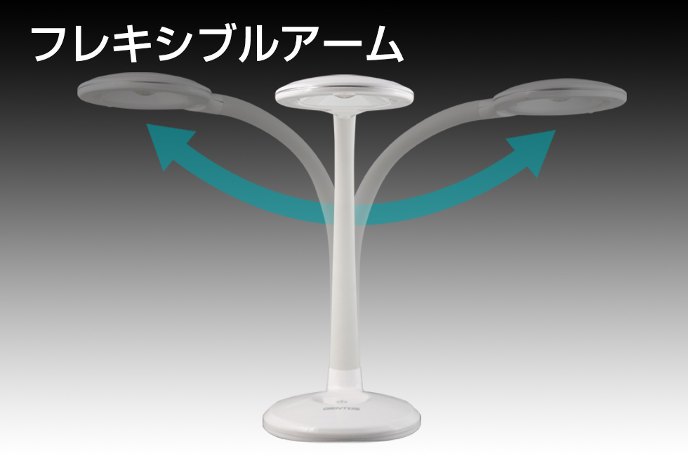 - フレキシブルアームで光の方向・向きを自由に調節できる。