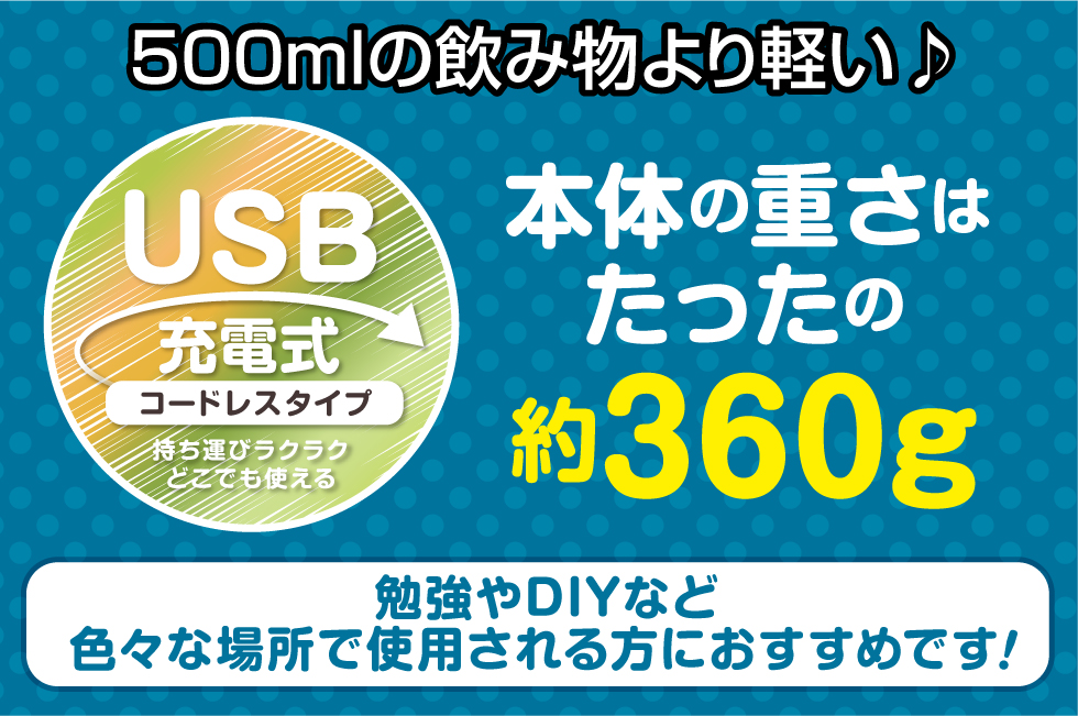 - フレキシブルアームで光の方向・向きを自由に調節できる。