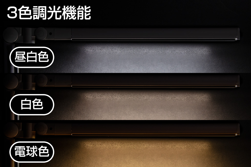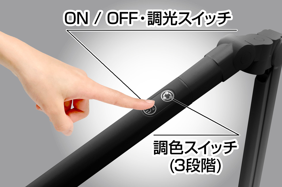 - 3色調色&無段階調光機能搭載、もっと眼のことを考えたデスクライト