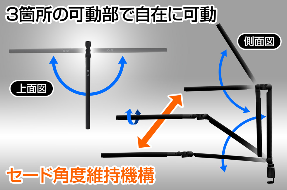 - 本体サイズ(約):(セード)W460.0×H30.0×D27.5mm、(ネック)W510.0×H23.5×D32.5mm、(クランプ)W50.5×H93.6×D50.5mm
