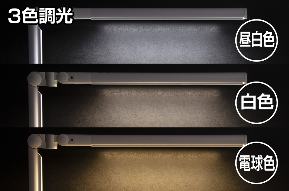 - 光色を昼白色から電球色まで無段階で調光できる調色機能付き。