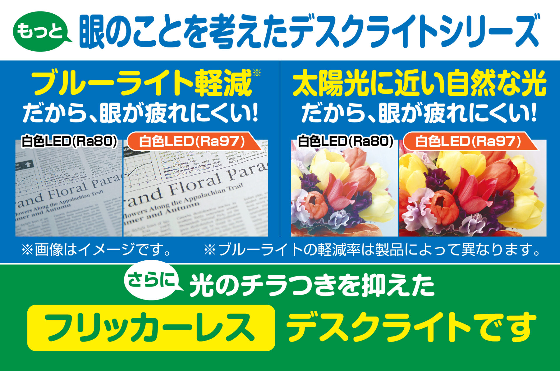 - 高演色(Ra97)&フリッカーレスでもっと眼のことを考えたデスクライト