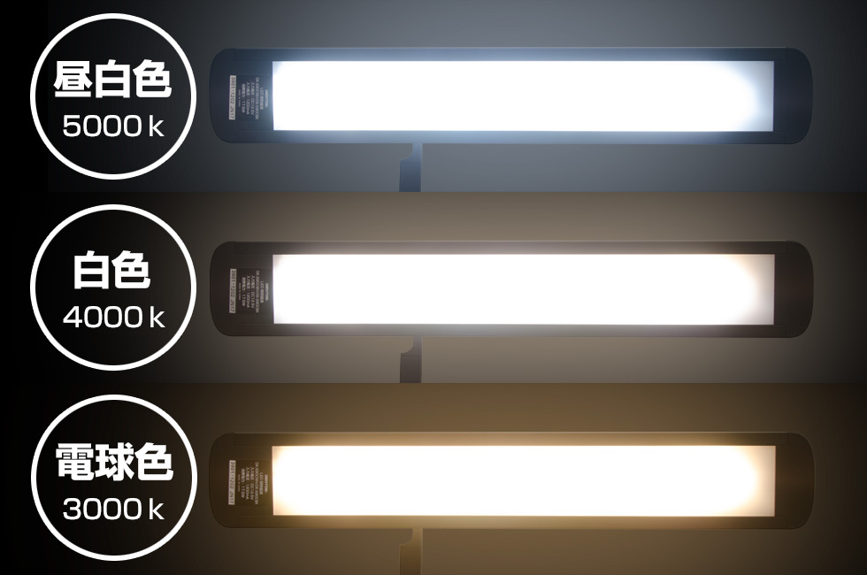 - 光色を昼白色から電球色まで無段階で調光できる調色機能付き。