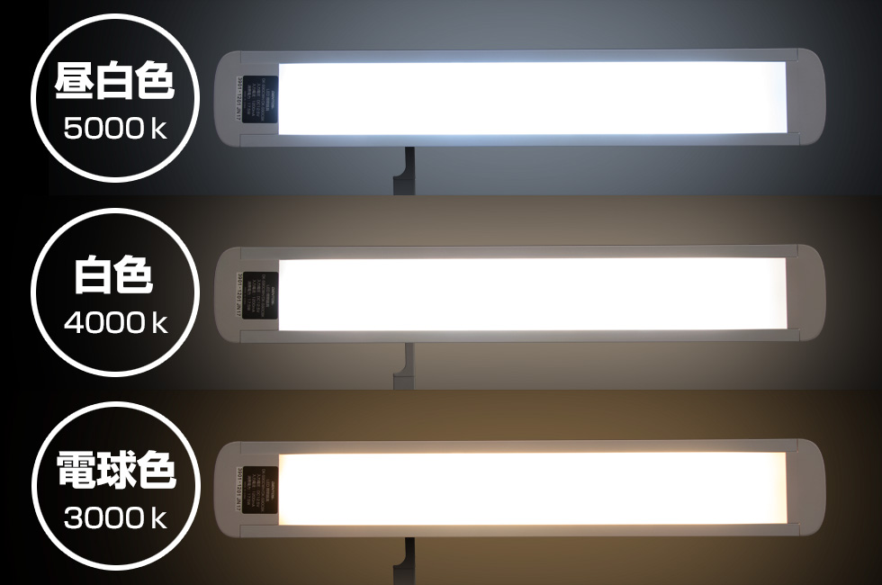 - 光色を昼白色から電球色まで無段階で調光できる調色機能付き。