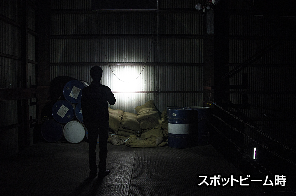 - スライドフォーカスシステム:ヘッド部分を前後させることで、片手で簡単に照射角調整をする事ができる。