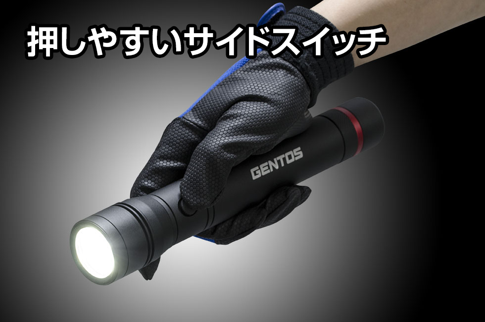 - 耐塵・耐水仕様(IP66準拠)&2m落下耐久、Maxモードを含む4段階の調光機能