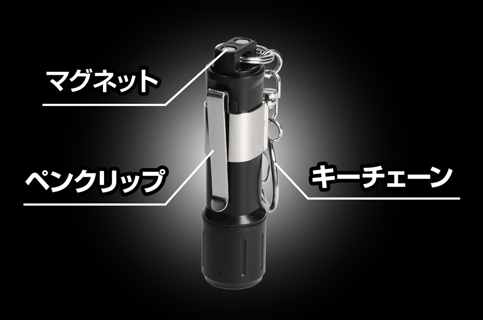 - サイド赤色LED:暗い場所で手元を照らすなど、メインLEDでは明るすぎる際に便利。