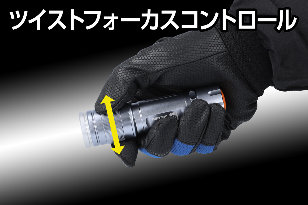 • フォーカスコントロール:フォーカスヘッドを回すことでスポットビームからワイドビームまで無段階に調節可能。