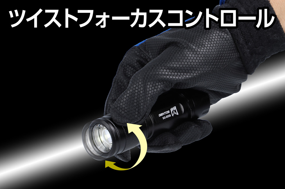 - フォーカスコントロール:フォーカスヘッドを回すことでスポットビームからワイドビームまで無段階に調節可能。