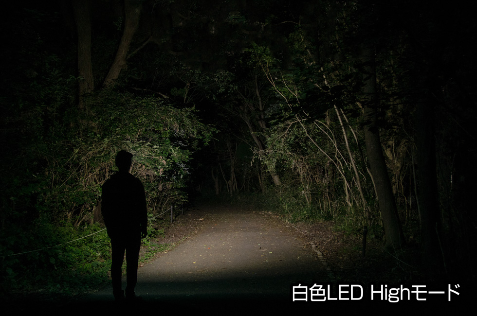 - 点灯時間(約):2.5時間(Highモード)/ 5時間(Midモード)/ 35時間(Ecoモード)/ 20時間(赤色点灯)/ 120時間(赤色点滅)