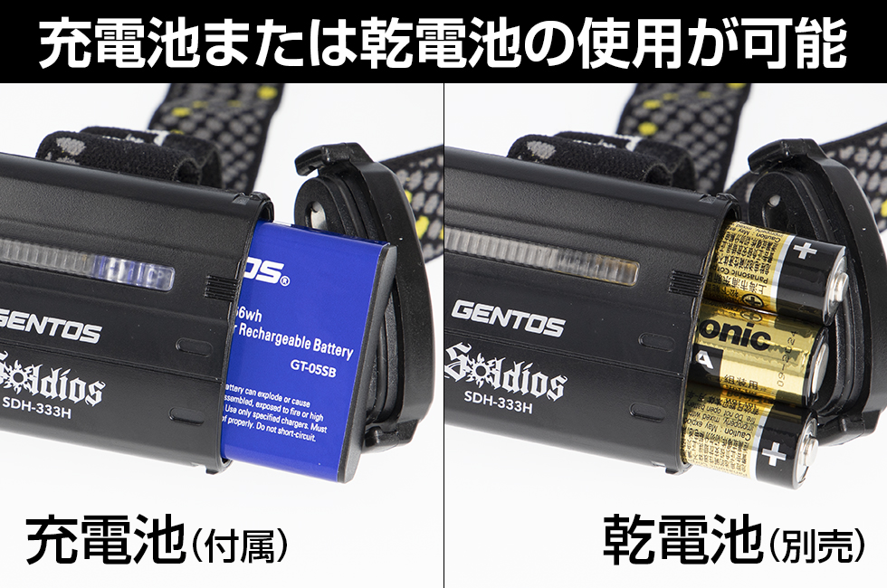 - 使用電池:専用リチウムポリマー充電池3.7V 1,800mAh または 単3形アルカリ電池×3本