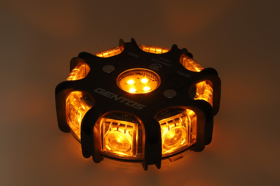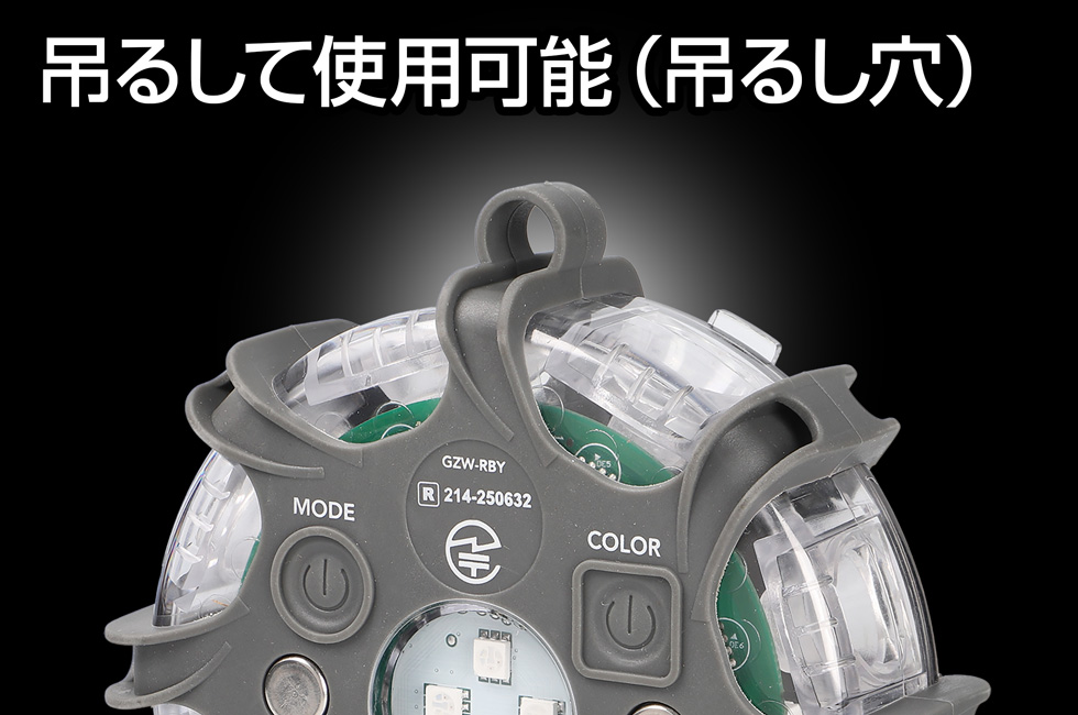 - 3色(赤、青、黄)切り替え可能+消灯するスタンバイモード搭載のワーニングライト