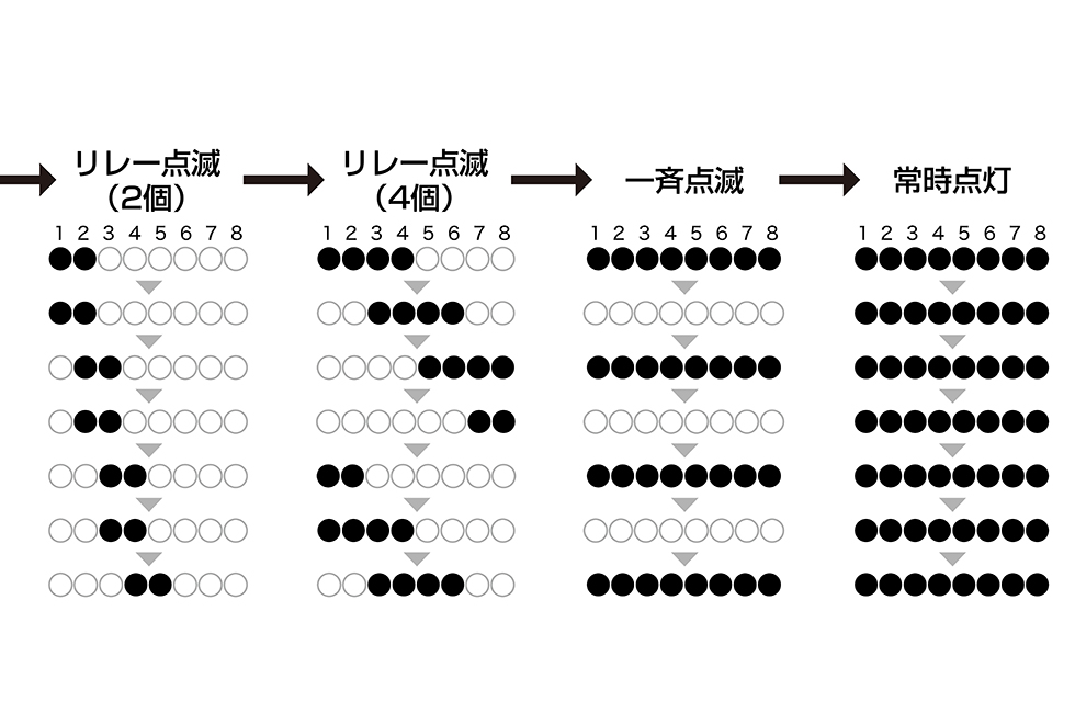 - 使用光源:高輝度チップタイプ3色(赤色・青色・黄色)LED×12個(1ユニットあたり)